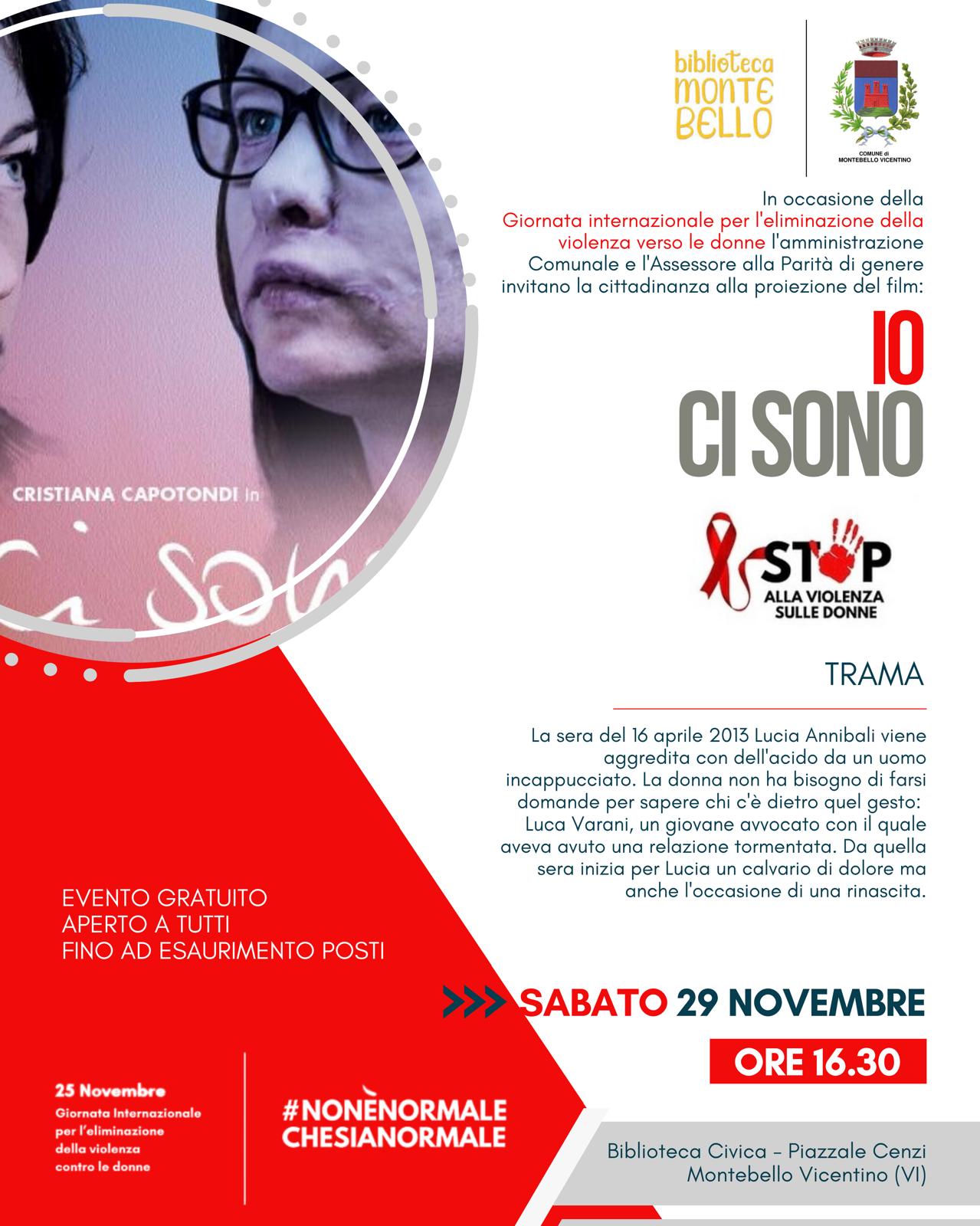 Sabato 29 novembre alle ore 16:30 presso la Bilbioteca Comunale, in occasione della Giornata internazionale per l’eliminazione della violenza contro le donne, l’Amministrazione Comunale e l’Assessorato alla Parità di genere invitano la cittadinanza alla proiezione gratuita del film “Io ci sono”, con Cristiana Capotondi.