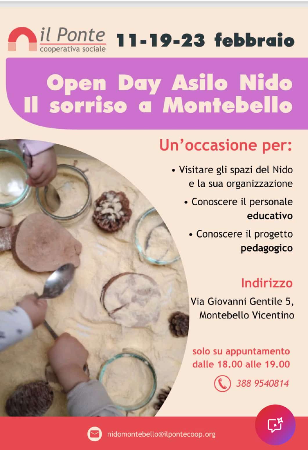 L’asilo nido comunale “Il sorriso” (via G. Gentile 5) apre le porte alle famiglie per far conoscere i suoi spazi e la sua organizzazione, il personale educativo e il progetto pedagogico.